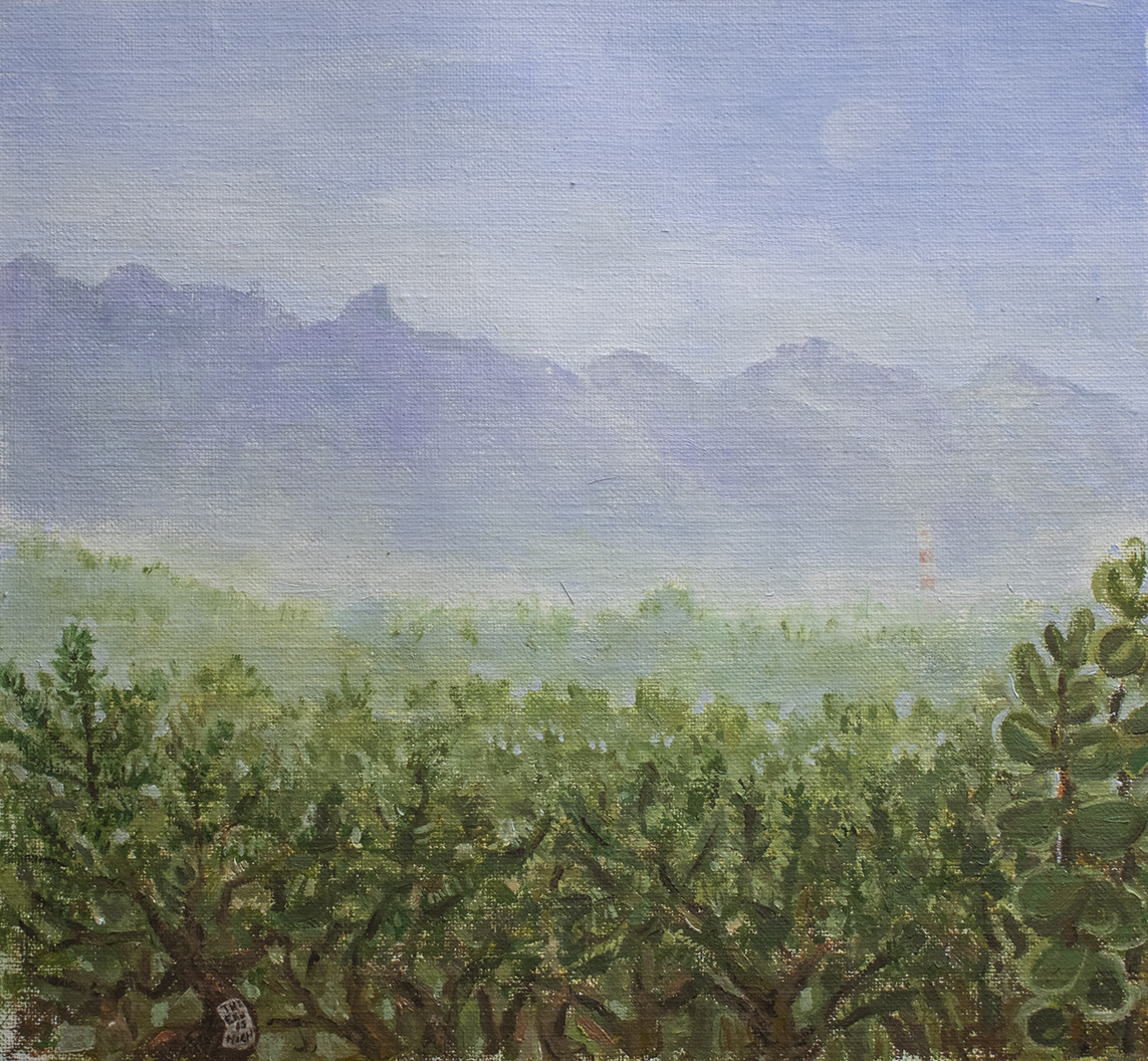 Los Viajes (Journeys) was a project conceived at the end of lockdown due to the Covid-19 pandemic in Buenos Aires. The works on this show are from different years and series, except for Traslasierra and The Moon that were painted during lockdown. The proposal was to show works that had no characters in them.